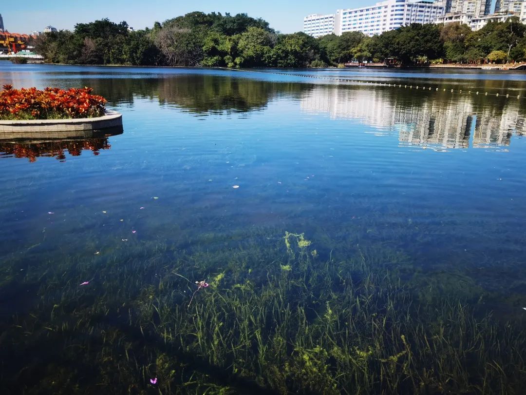 目前,整個流花湖湖水主要水質指標總磷、氨氮、COD、BOD5均已達到國家地表水Ⅳ類標準,透明度清澈見底,水下森林清晰呈現,形成了良性的生態自我修復系統。